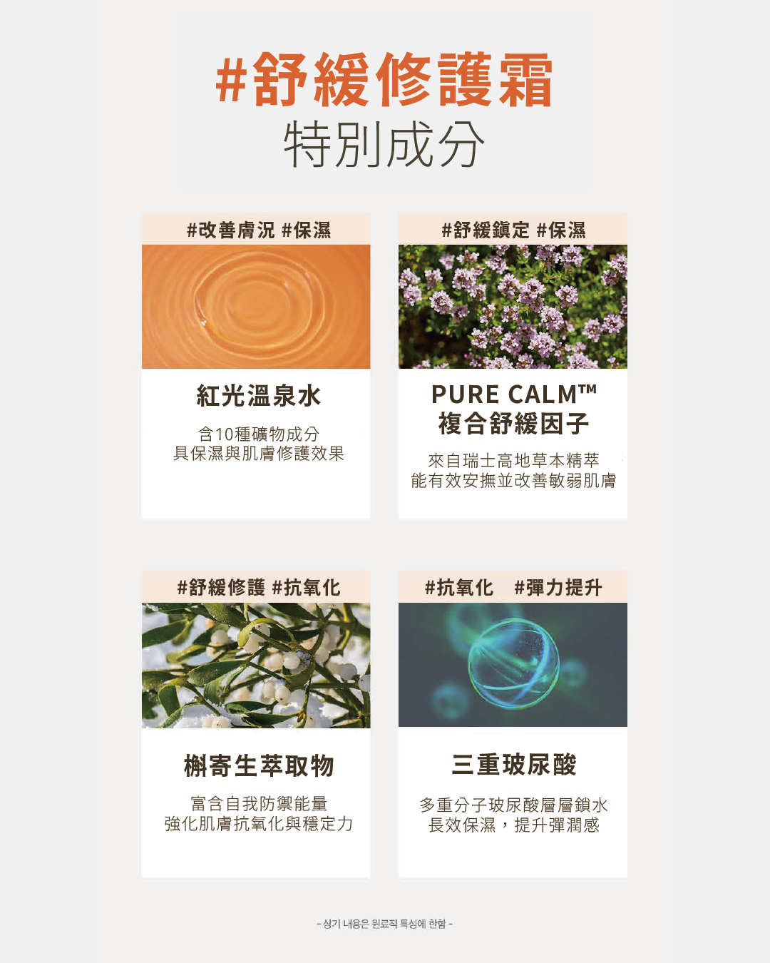 ✔ 添加高地植物與抗氧化複合物,舒緩乾癢泛紅